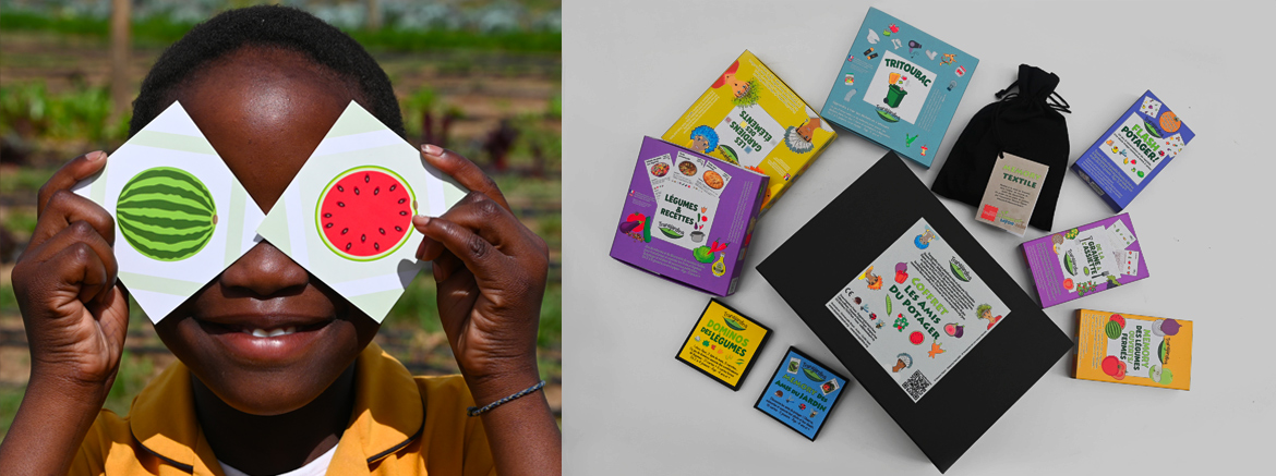 Designing Hope is proud to introduce the “Coffret des Amis du Potager” (Friends of the Vegetable Garden Box Set). It brings together nine original games designed by the association, all of which are also available individually. This box set aims to raise young children’s awareness of sustainable agriculture, nutrition and biodiversity. find out more...