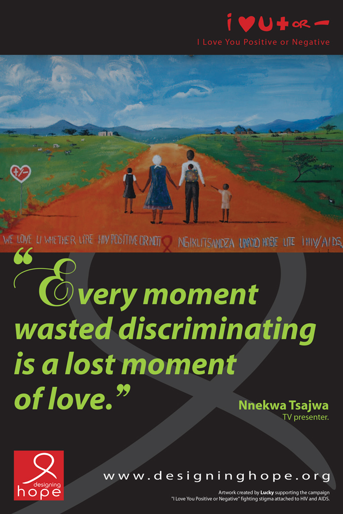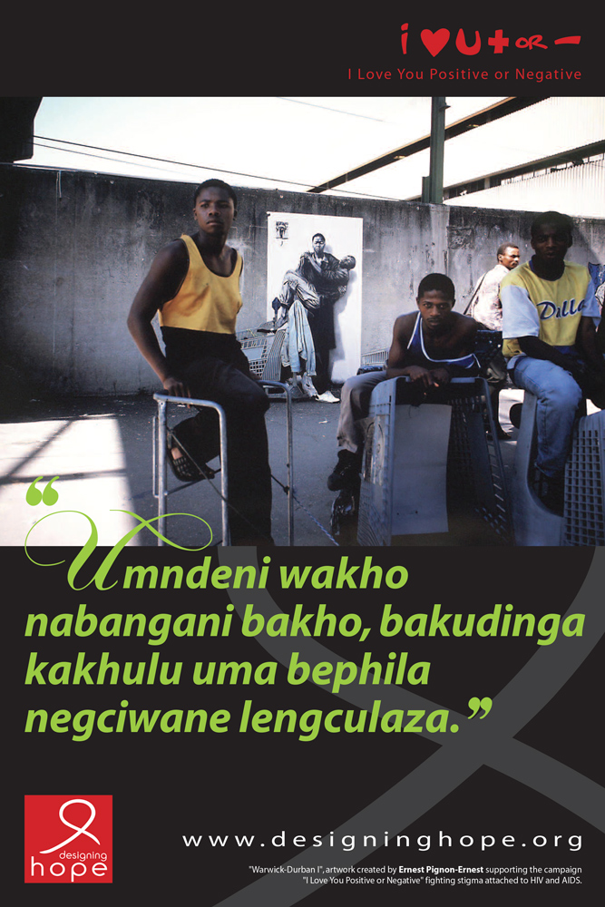 Launched in 2005 by the association Designing Hope, the “I Love You Positive or Negative” campaign carries a simple and universal message: everyone has the right to love and to be loved, regardless of their HIV status.