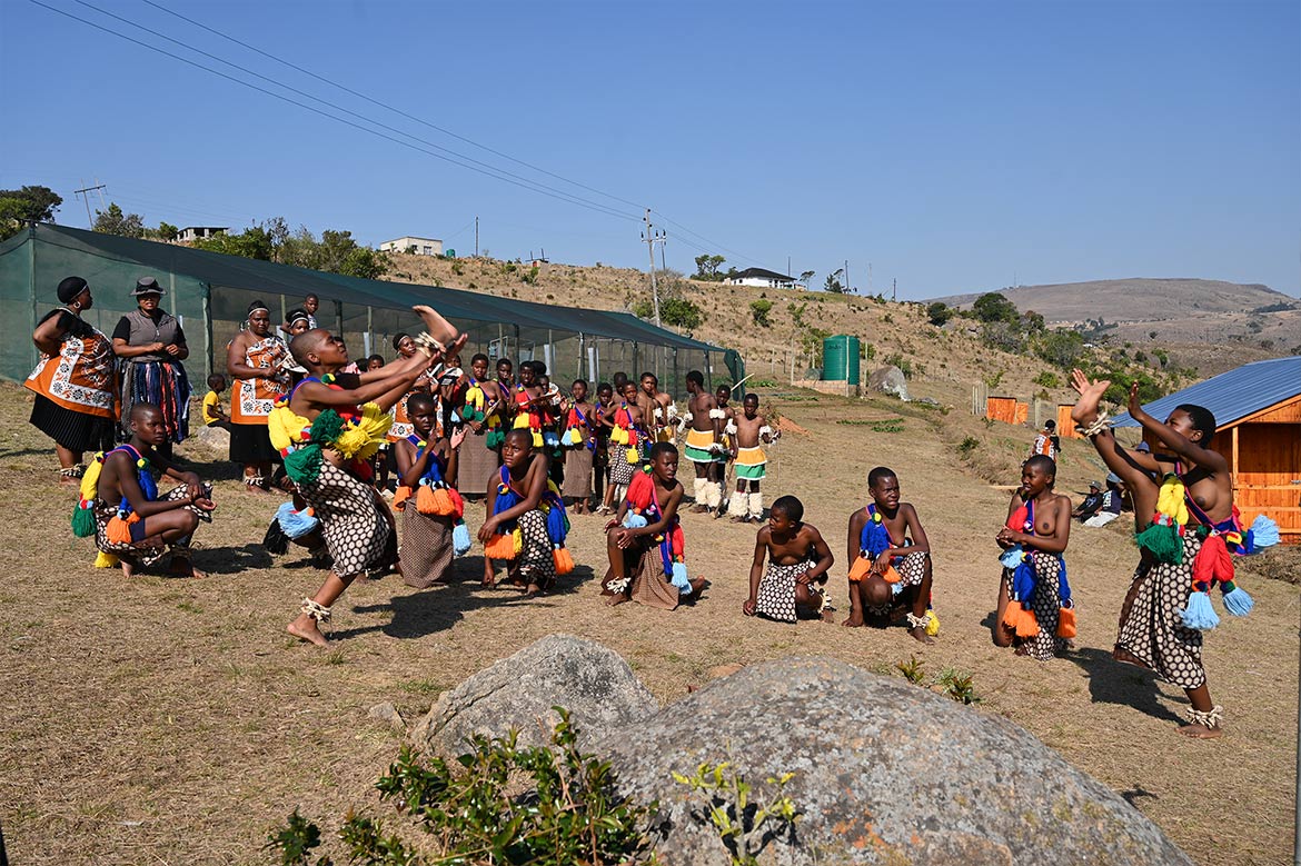 On the occasion of the inauguration of the Garden of Skills, about fifty children rehearsed a dance show in traditional costumes, some of which were accompanied by the women in charge of the garden.