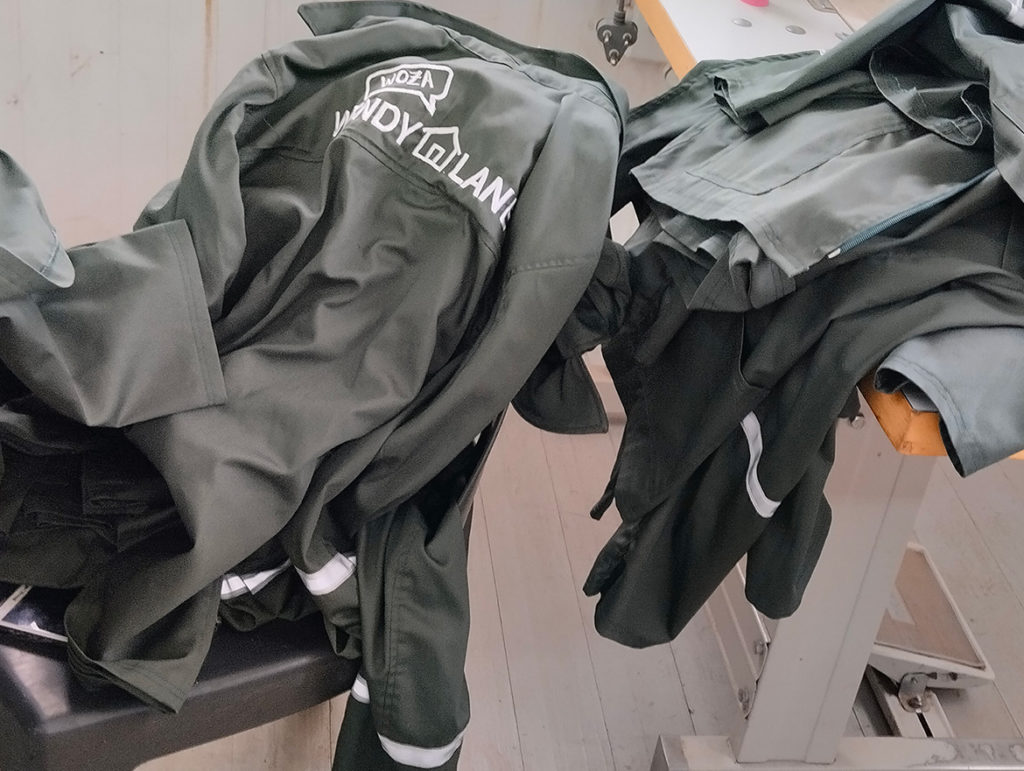Seduced by Designing Hope’s solidarity-based approach and the quality of the work carried out by the women in the workshop, the head of Wendy Lane entrusted the team with the manufacture of 30 work jackets and pants, personalized with the company’s embroidered logo.