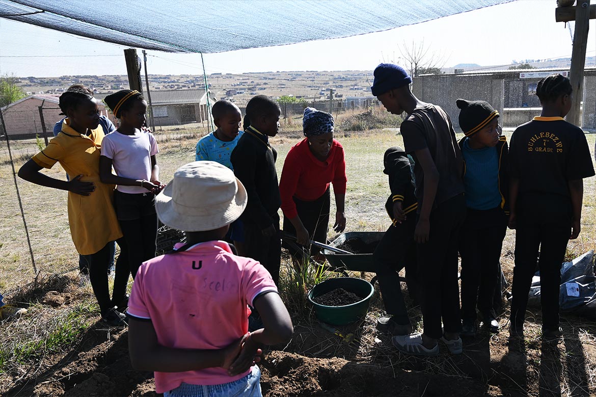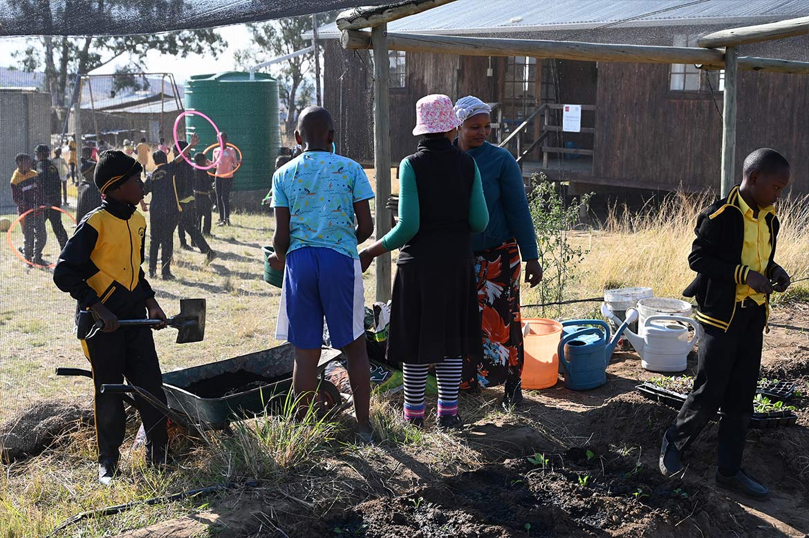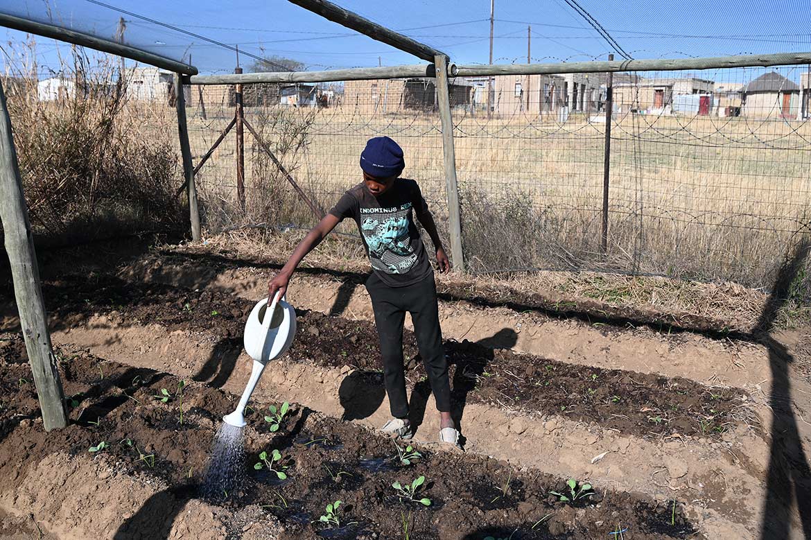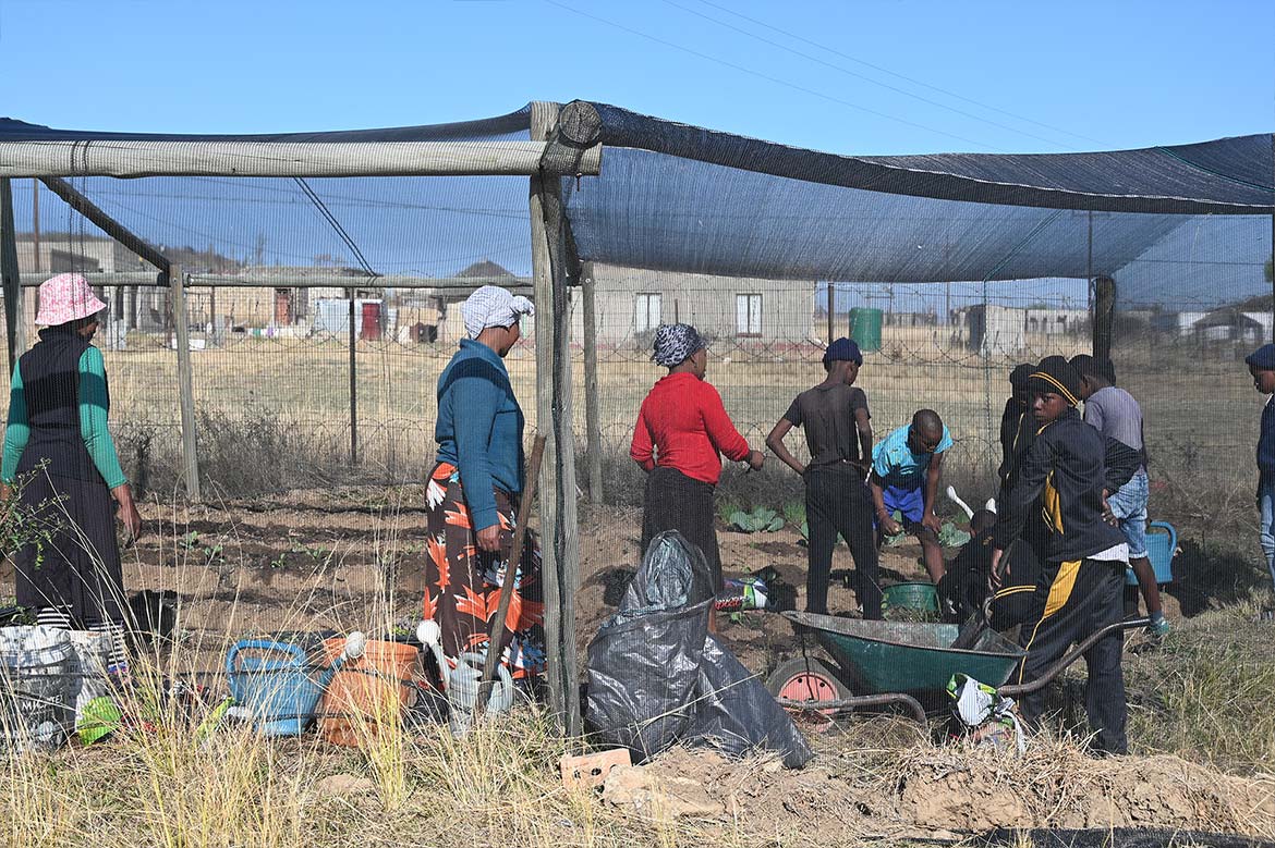 The greenhouse at the Half Way House in Roosboom, expanded with the help of the young farmers from St. Monica’s Farm in Lesotho, can now accommodate more plants, protected from the sun’s rays and from the birds and grasshoppers, which love the young shoots, especially during the dry winter season.