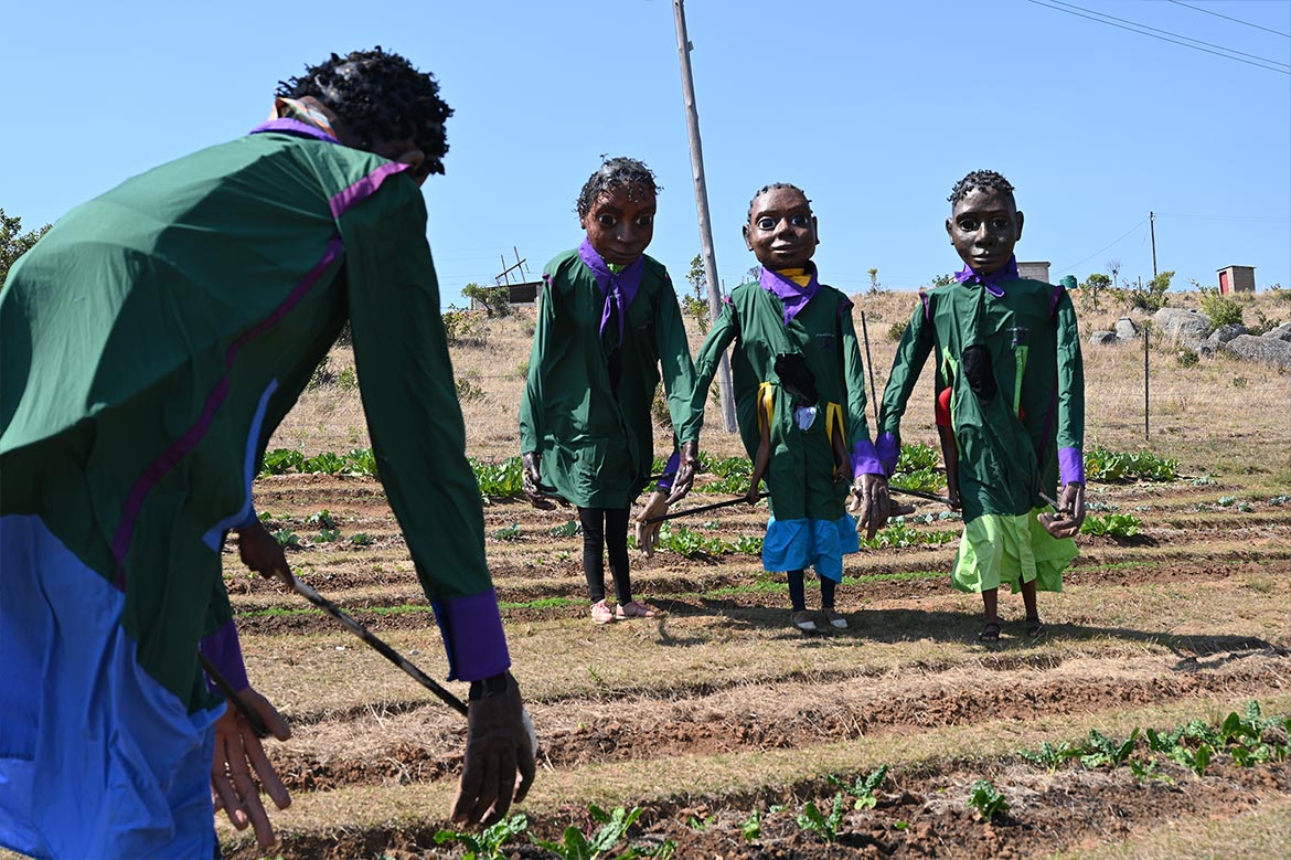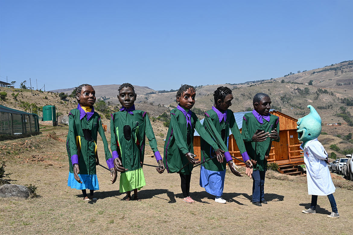 On the occasion of the inauguration of the Garden of Skills, the giant puppets made by Designing Hope association and Les Grandes Personnes performed for the guests of Malanti.