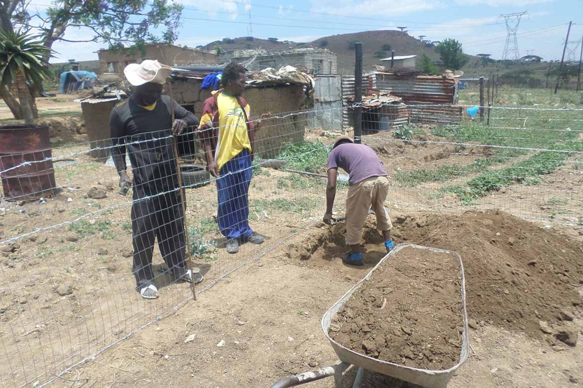 In the context of the One House One Garden project, the occupants of the Half Way House helped during the construction of the new garden. Fencing, manpower and knowledge in permaculture, every month Designing Hope allows the establishment of a new garden in the hope of promoting sustainable farming techniques to families in need.