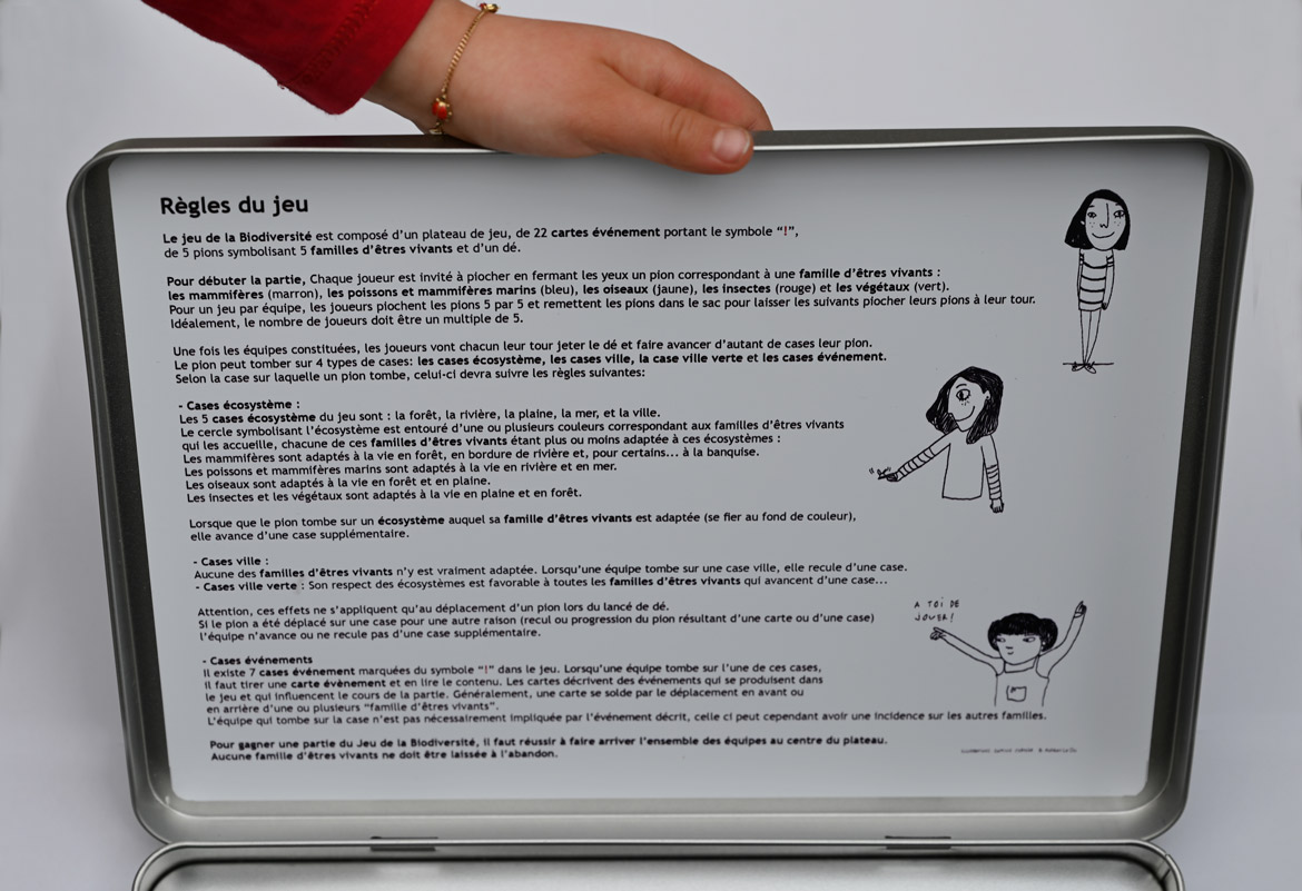 Developed in 2018 by Designing Hope, the Biodiversity Game introduces children to current environmental issues in a playful way. Up till now uniquely developed in its prototype version for the Bercy school, the game is being developed in a small series, available in 2 versions, for schools and for families.