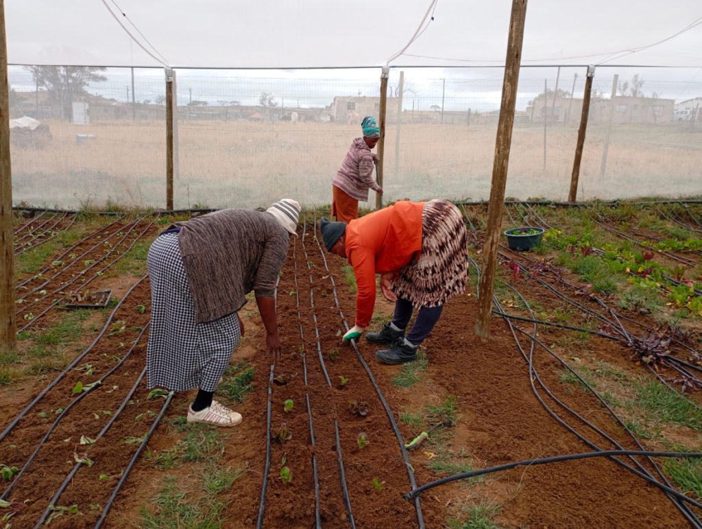 The women in charge of the vegetable garden are busy transplanting hundreds of seedlings into the production greenhouse, where they can grow in optimal conditions before being harvested.